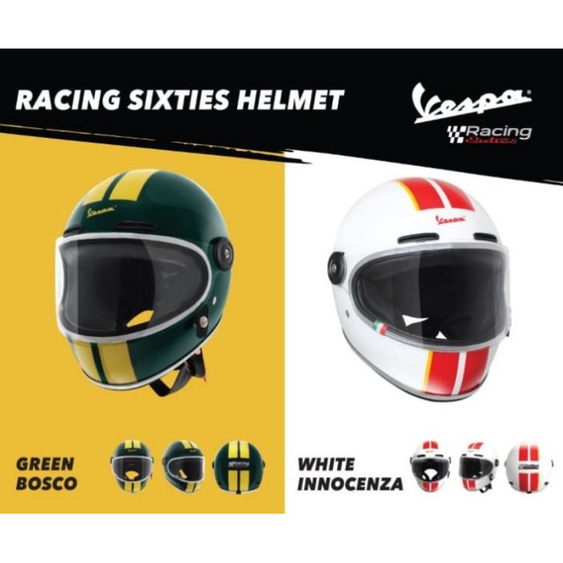 Layaknya Vespa Racing Sixties helm Racing Sixties ini juga hadir dalam 2 pilihan warna yakni kombinasi putih beraksen merah serta warna dasar hijau dengan. Vespa full face helmet Racing Sixties 60s red. Products are normally delivered within 3 working days from receiving the order in Italy and the EU and within 5 working days for all other destinations.