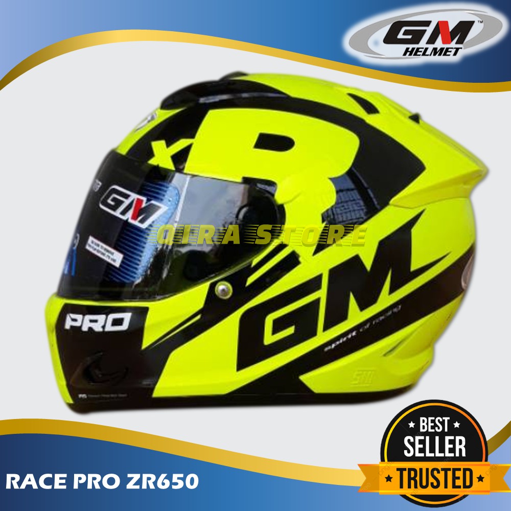 Helm Full Face Fullface Gm Race Pro Zr650 Yellow Fluo Black Motor Sni Dewasa Pria Wanita Helmet Shopee Indonesia